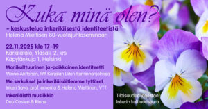 Tarjoiluja varten toivotaan etukäteisilmoittautumista 17.11. mennessä sähköpostitse kulttuuriseura@inkeri.fi